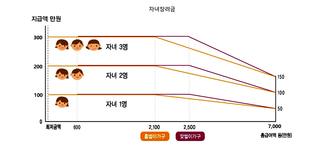 맞벌이 가구는 총급여액이 2,500만 원 미만일 경우 최대 금액 지급